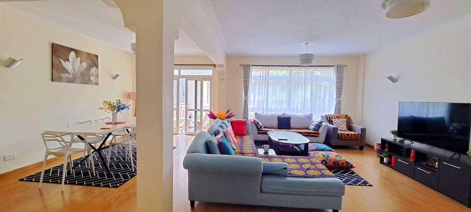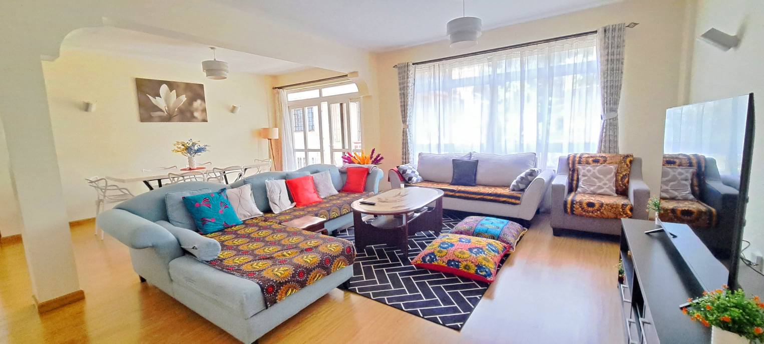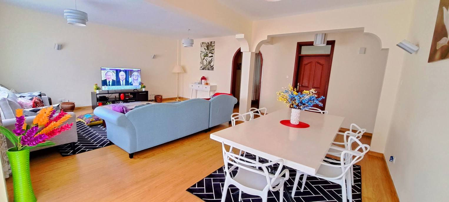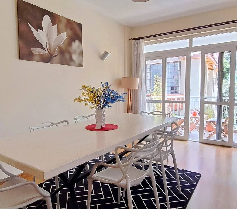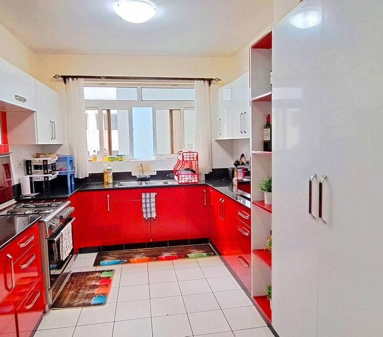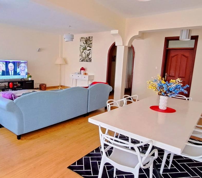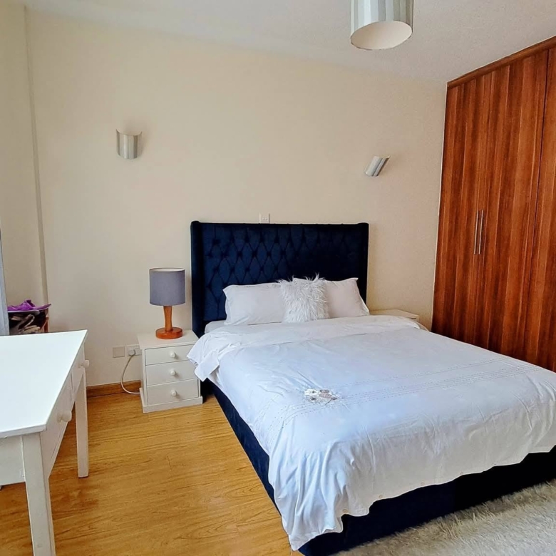2 rooms available in a shared 3-bedroom apartment for rent in Westlands off Brookside Drive. Each room is en-suite, with access to a spacious lounge, balcony, fitted kitchen, and laundry area. Enjoy amenities including a swimming pool, gym, lift, and backup generator. Rent is inclusive of water, electricity, WiFi, and housekeeping, located near Westgate Mall and Sarit Centre.