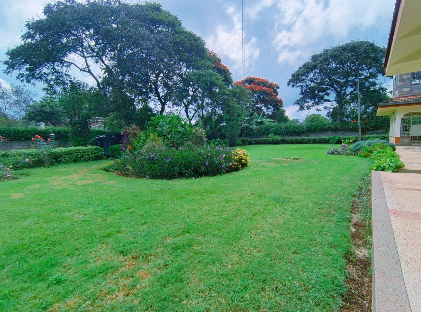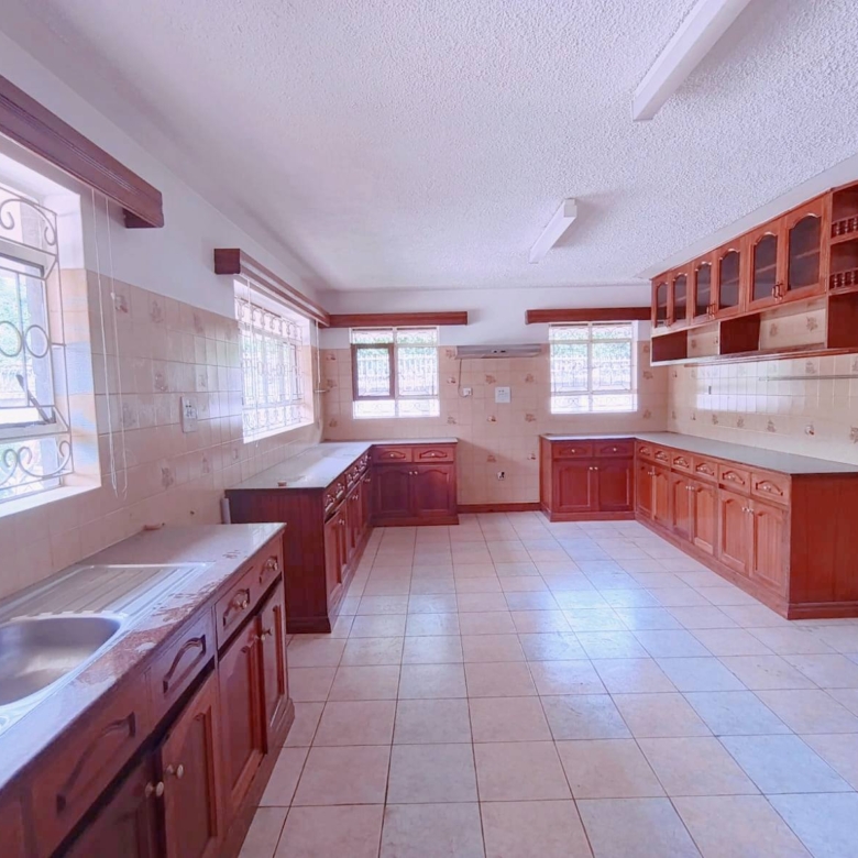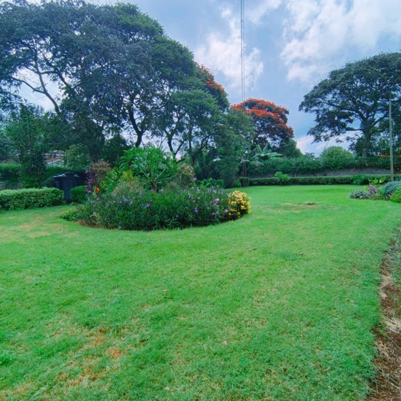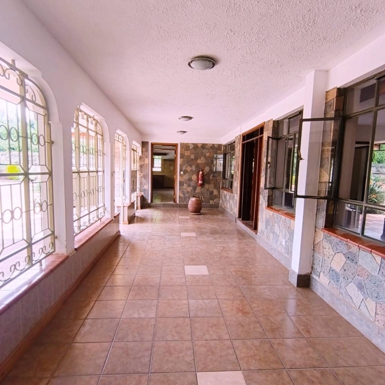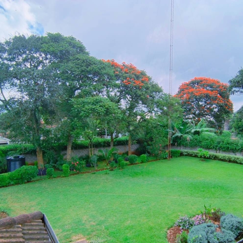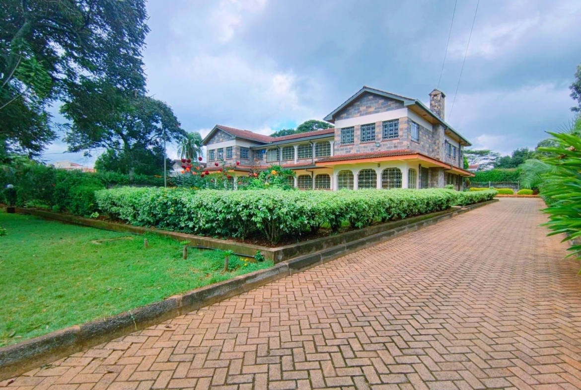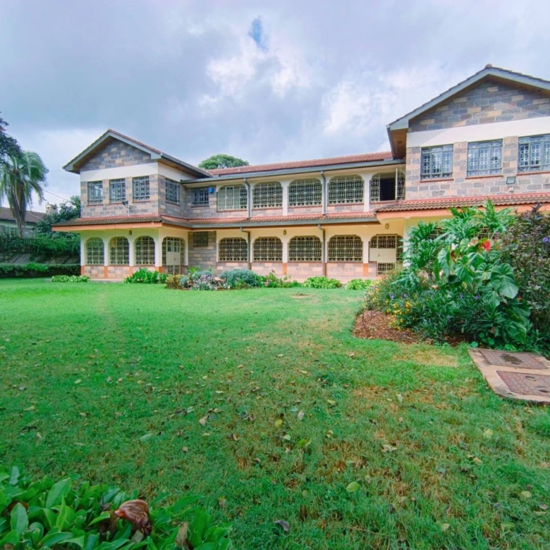 Spacious 6-bedroom all en-suite residence in Nyari Central, Nairobi, set on a ½-acre lush garden within a secure perimeter wall in a prime diplomatic zone, featuring two living rooms downstairs, a family room upstairs, and bedrooms opening to private balconies, with the main lounge leading to a large verandah, complemented by two self-contained 1-bedroom guest wings each with private living spaces, kitchens, and bathrooms, plus 3-room staff quarters, offering privacy, versatility, and UN/Embassy approved security, available at KES 500,000 per month.