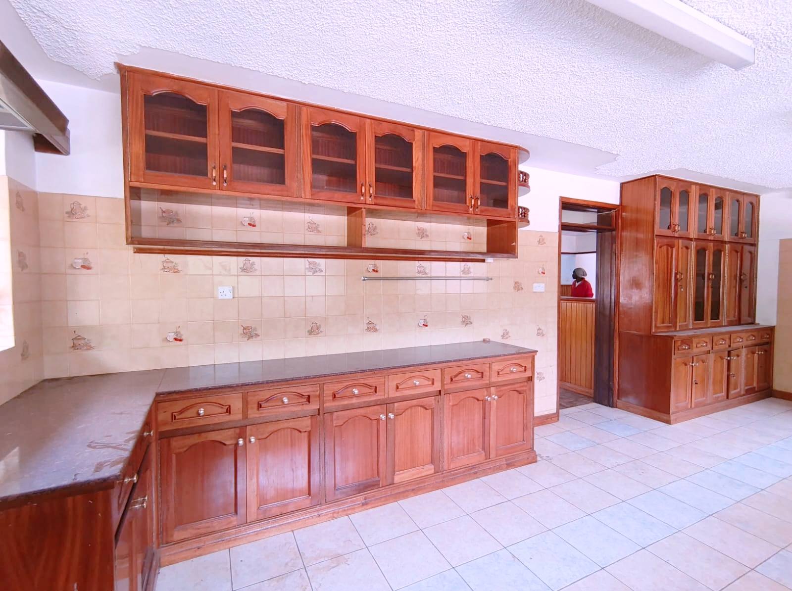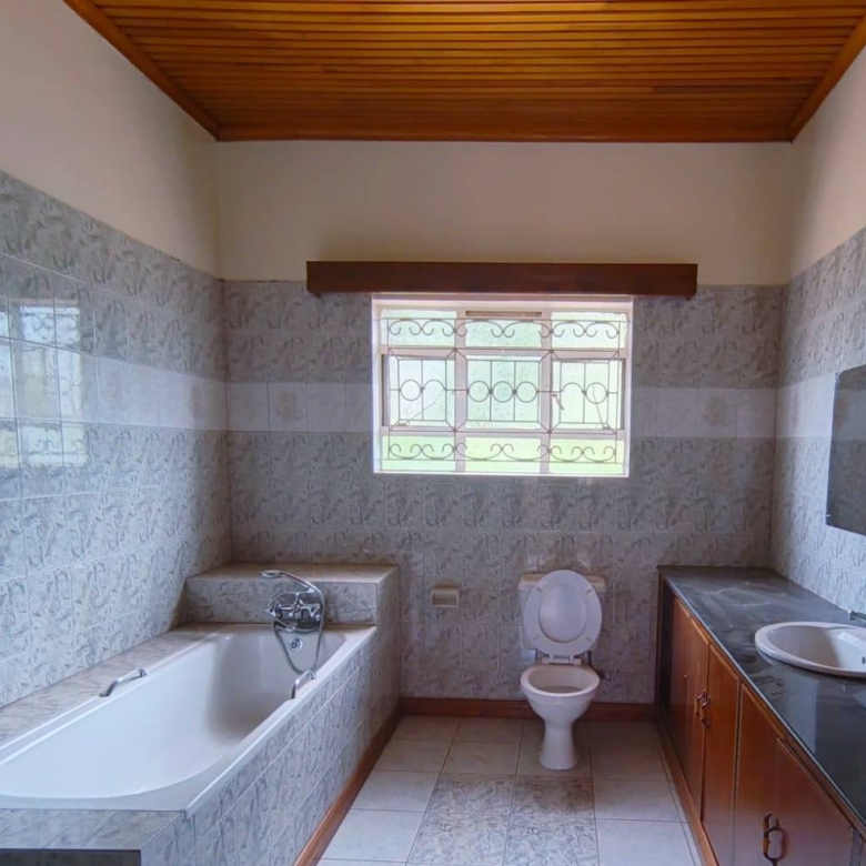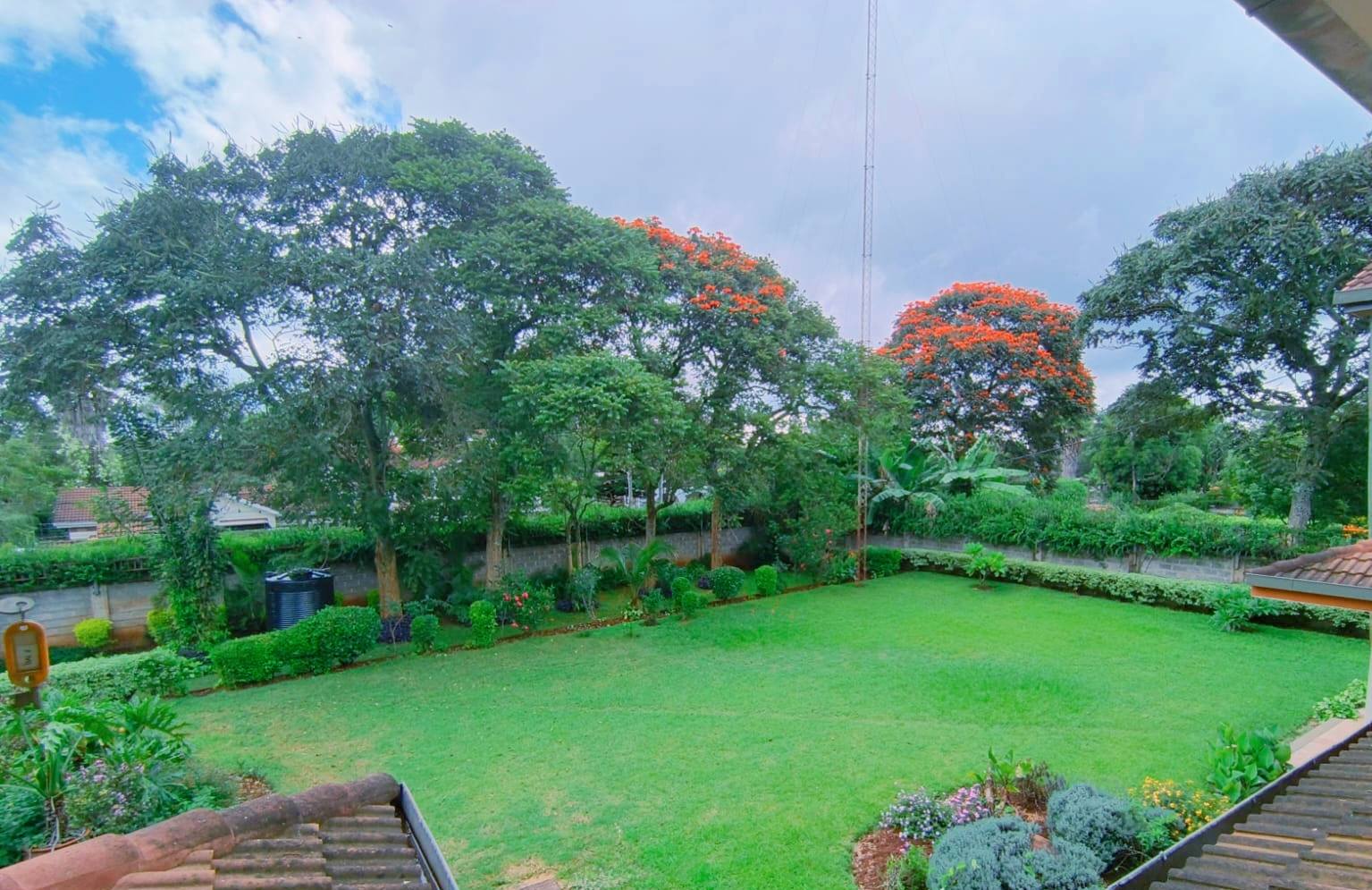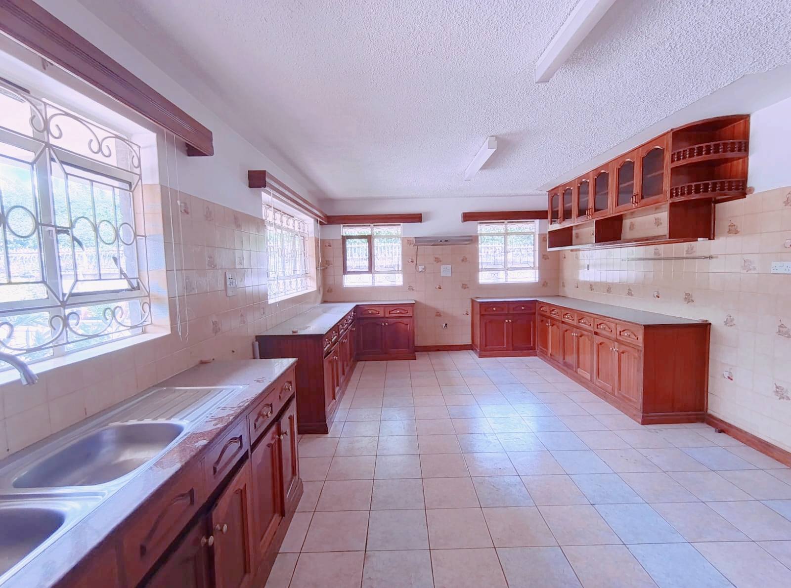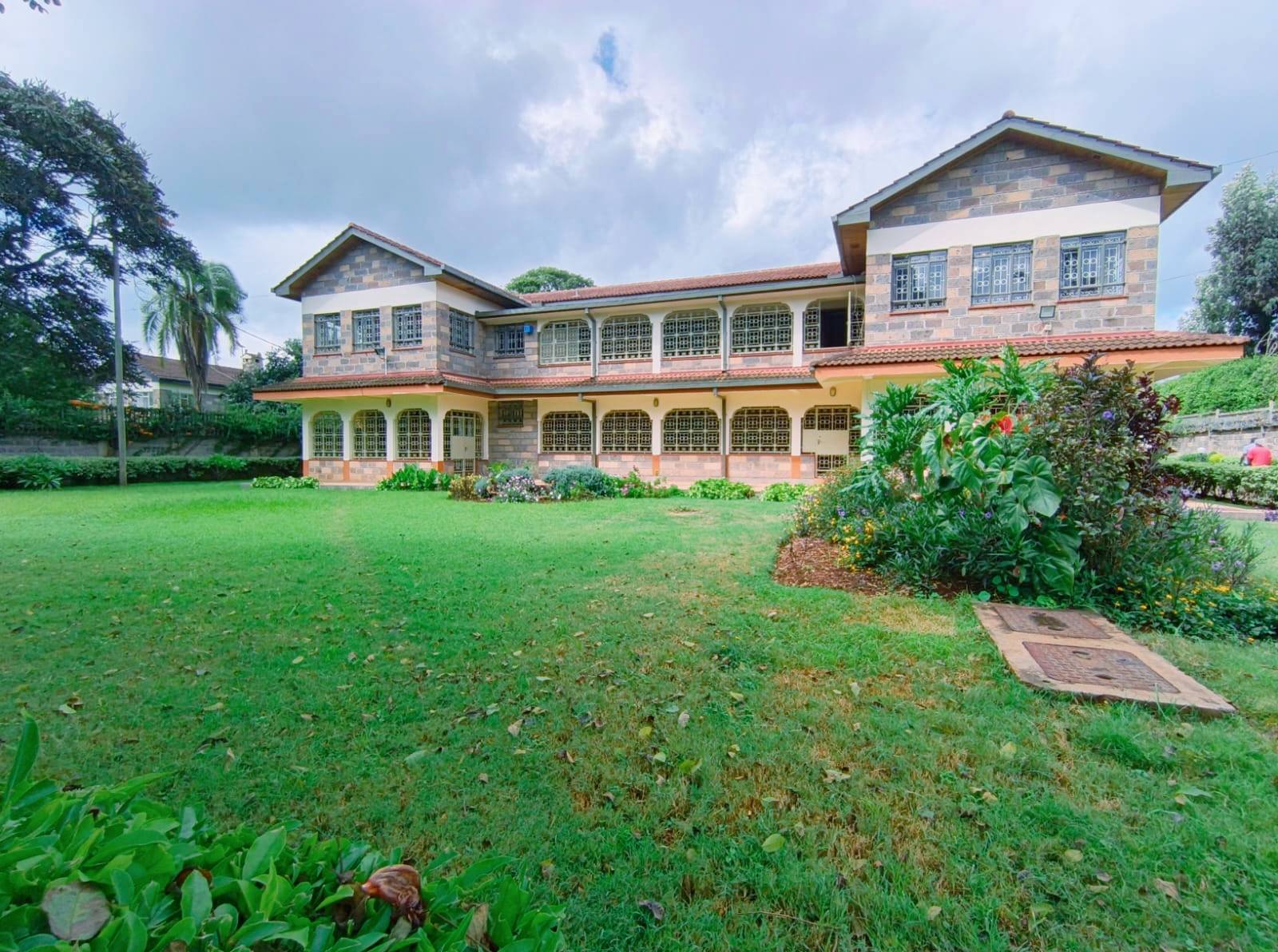 Spacious 6-bedroom all en-suite residence in Nyari Central, Nairobi, set on a ½-acre lush garden within a secure perimeter wall in a prime diplomatic zone, featuring two living rooms downstairs, a family room upstairs, and bedrooms opening to private balconies, with the main lounge leading to a large verandah, complemented by two self-contained 1-bedroom guest wings each with private living spaces, kitchens, and bathrooms, plus 3-room staff quarters, offering privacy, versatility, and UN/Embassy approved security, available at KES 500,000 per month.