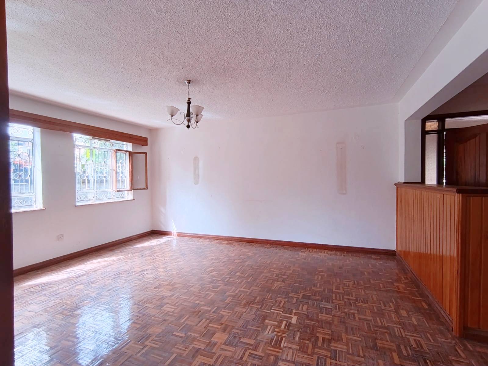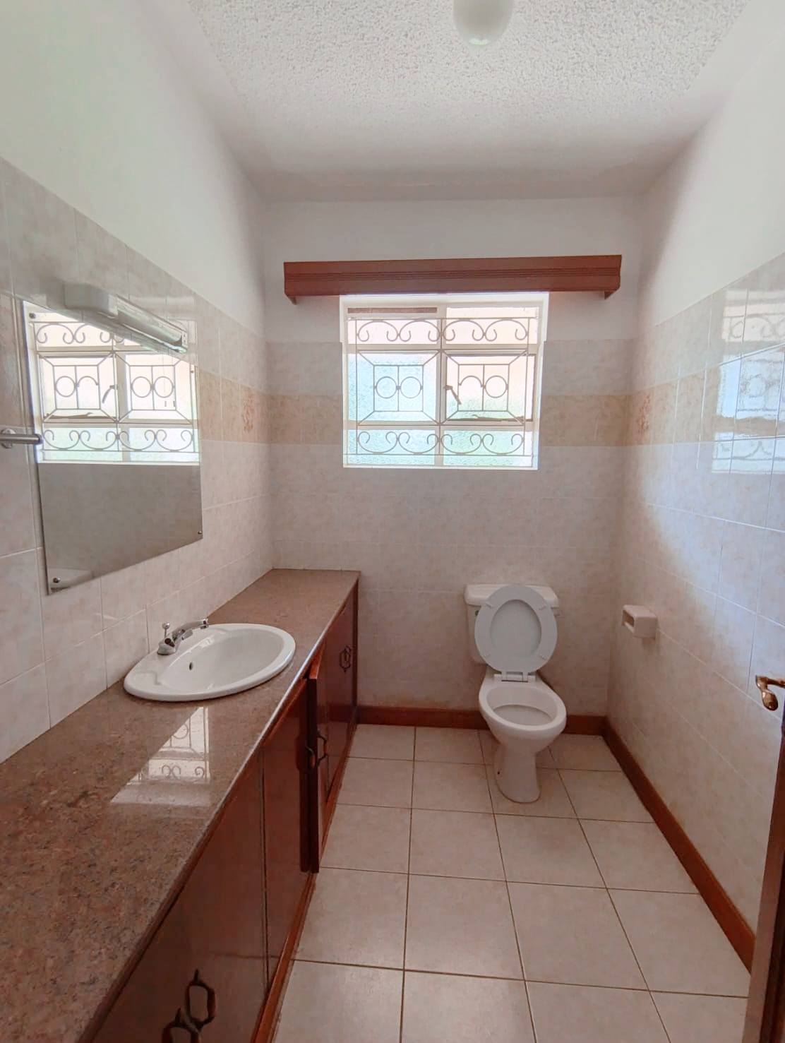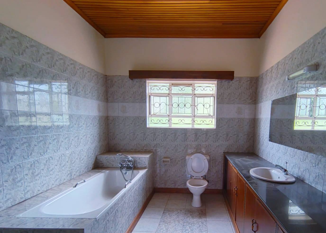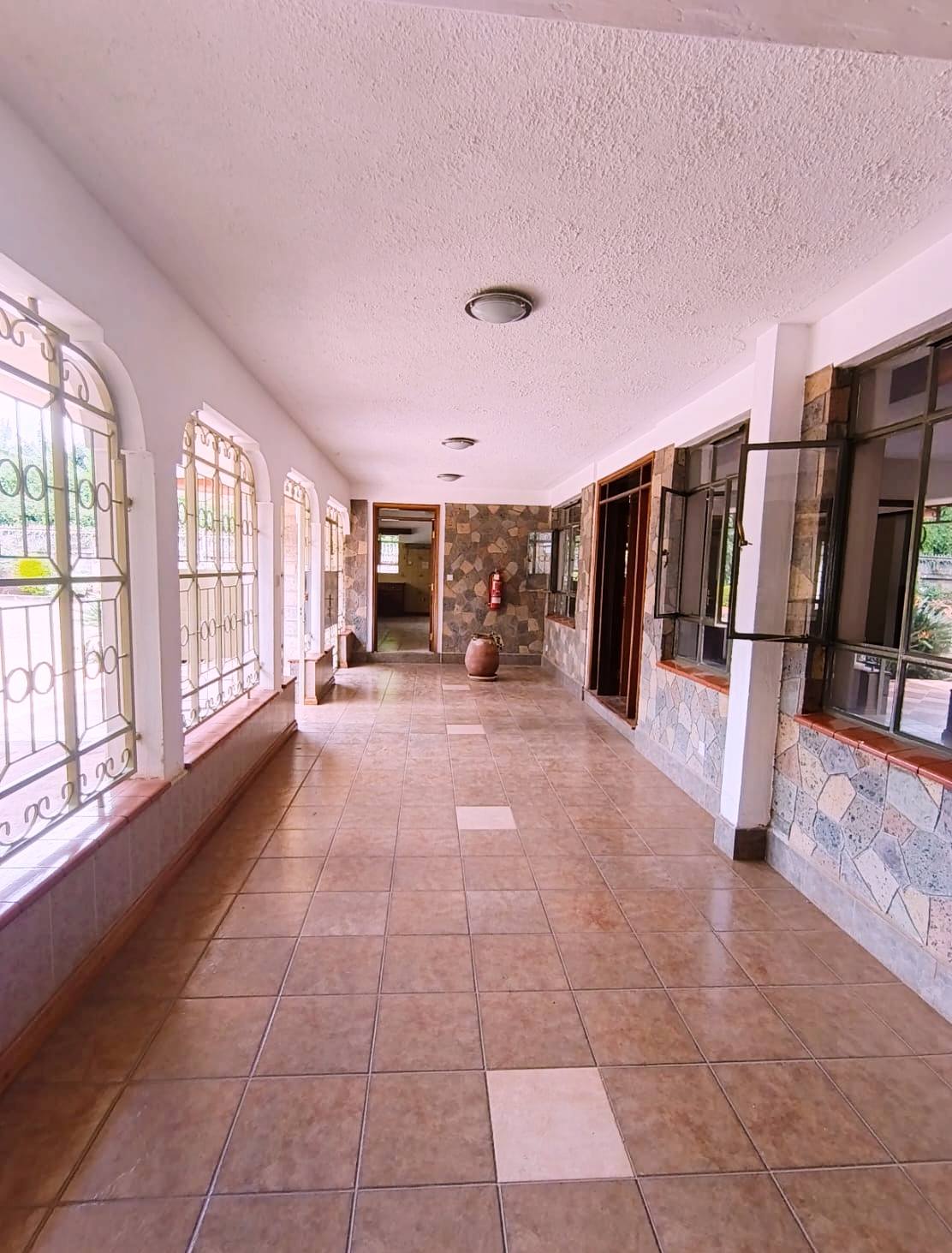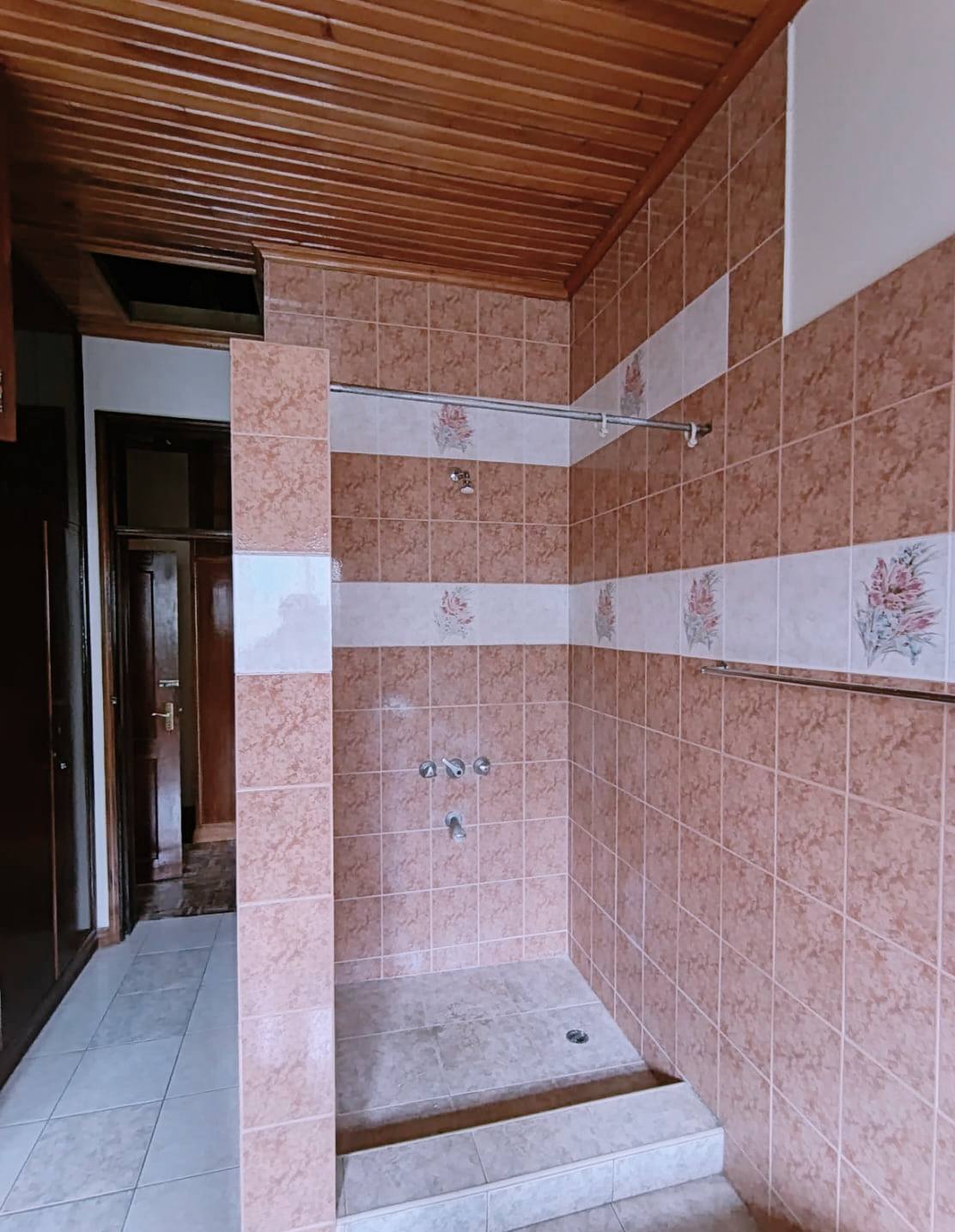 Spacious 6-bedroom all en-suite residence in Nyari Central, Nairobi, set on a ½-acre lush garden within a secure perimeter wall in a prime diplomatic zone, featuring two living rooms downstairs, a family room upstairs, and bedrooms opening to private balconies, with the main lounge leading to a large verandah, complemented by two self-contained 1-bedroom guest wings each with private living spaces, kitchens, and bathrooms, plus 3-room staff quarters, offering privacy, versatility, and UN/Embassy approved security, available at KES 500,000 per month.