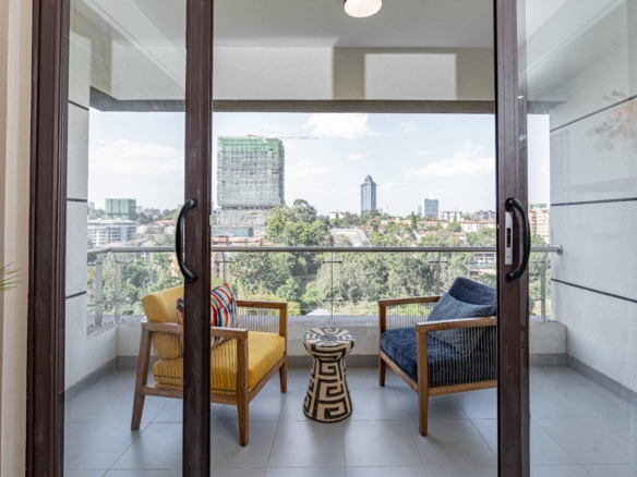 Fully furnished 1-bedroom apartment on Riverside Drive, Nairobi, offering a cozy and comfortable living space on the 15th floor with a private balcony and great city views, complemented by premium amenities including a fully equipped gym, indoor kids’ play area, fast internet, premium Netflix, power backup generator, secure private parking, and 24-hour video surveillance, ideally located close to Riverside Square Mall with high-end restaurants and entertainment options, available for both short and long stays at KES 6,000 per night or KES 150,000 per month (negotiable for longer stays).
