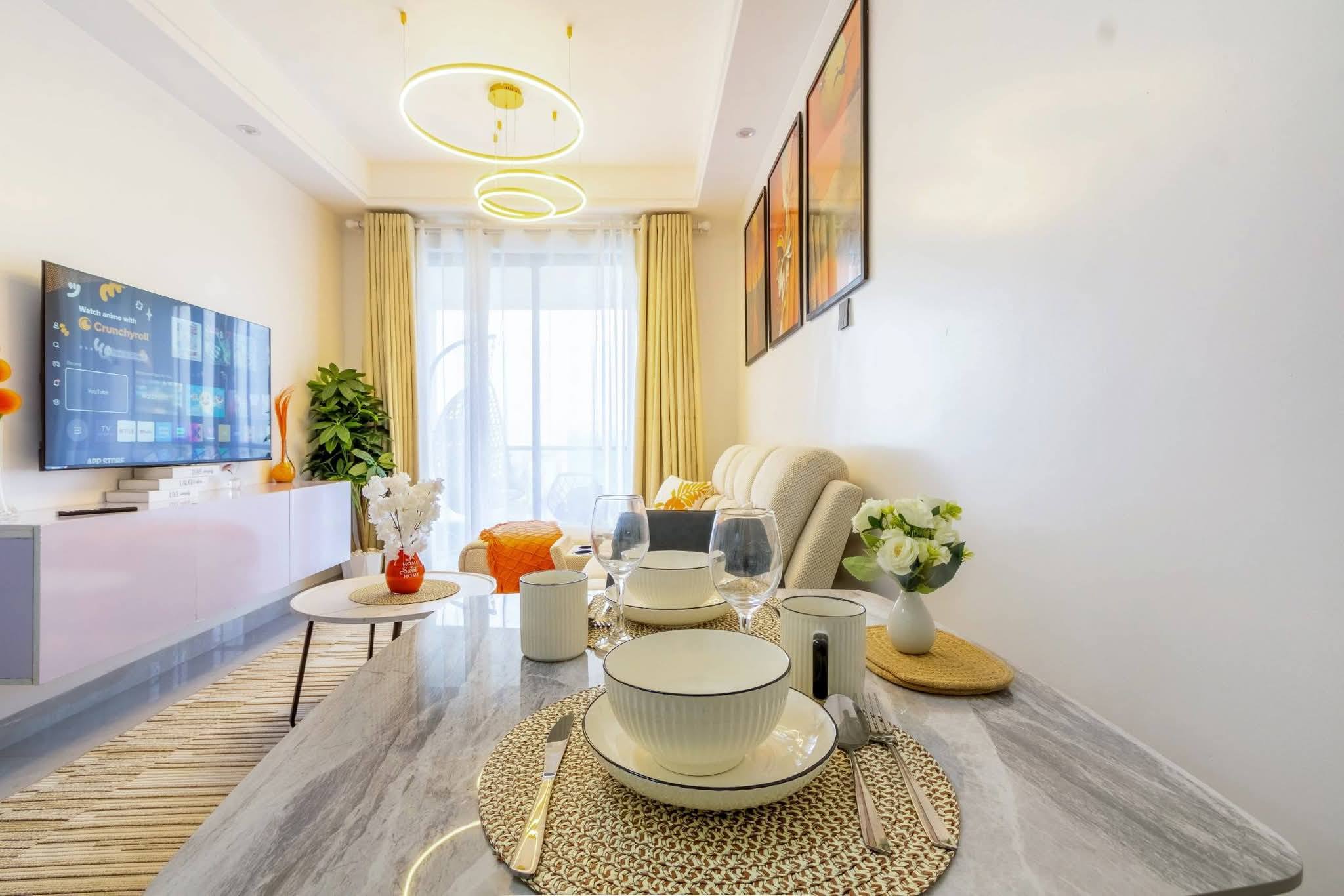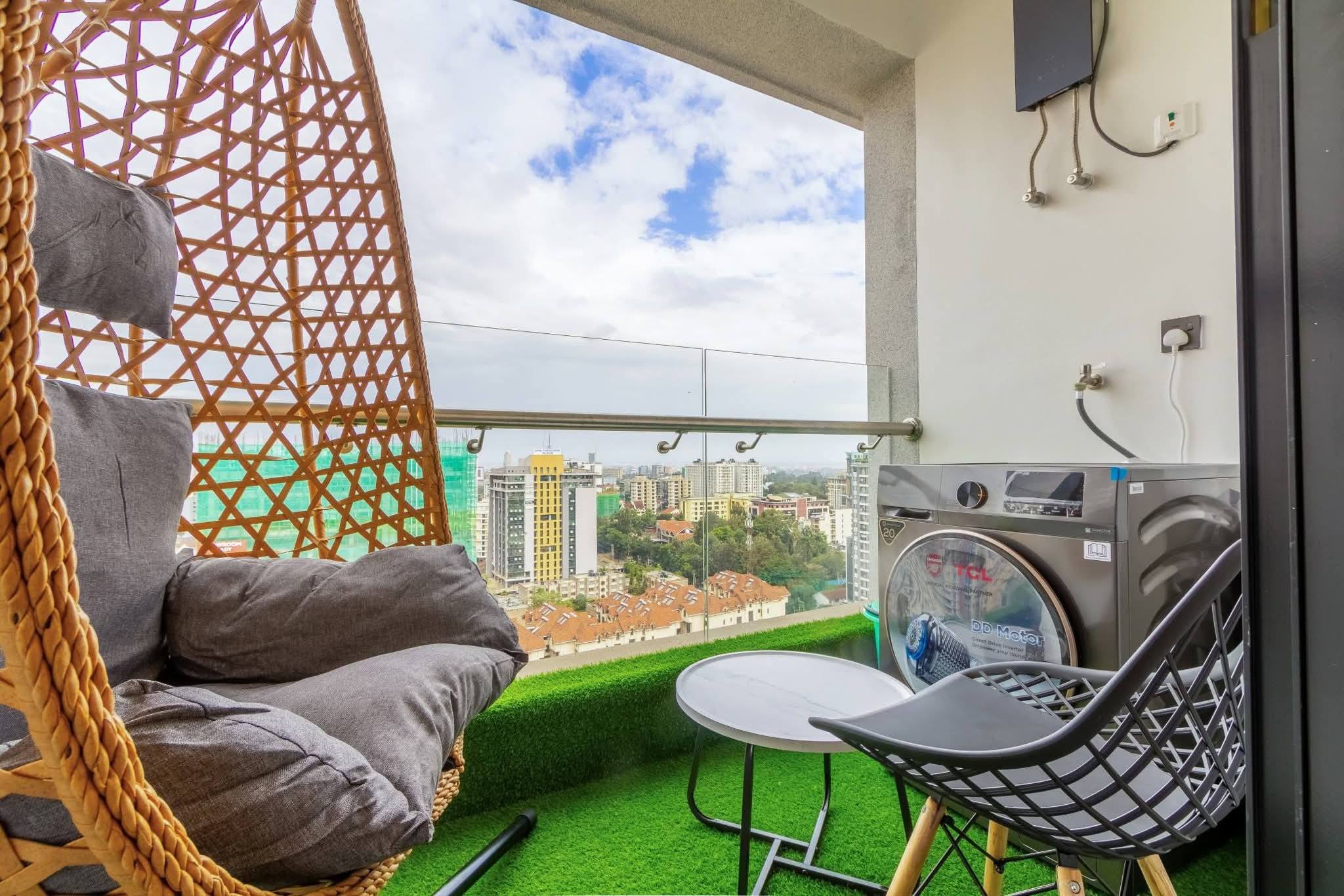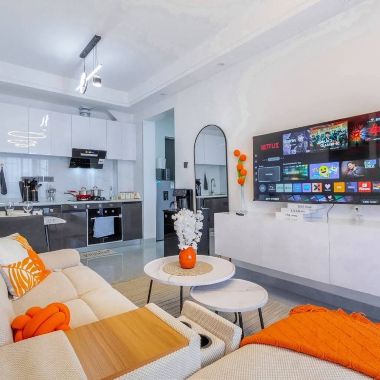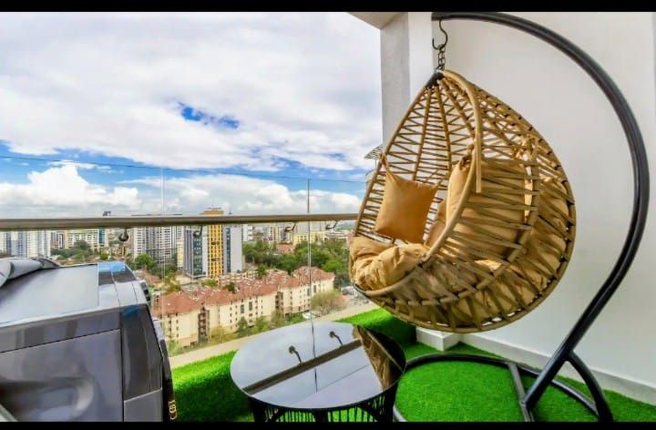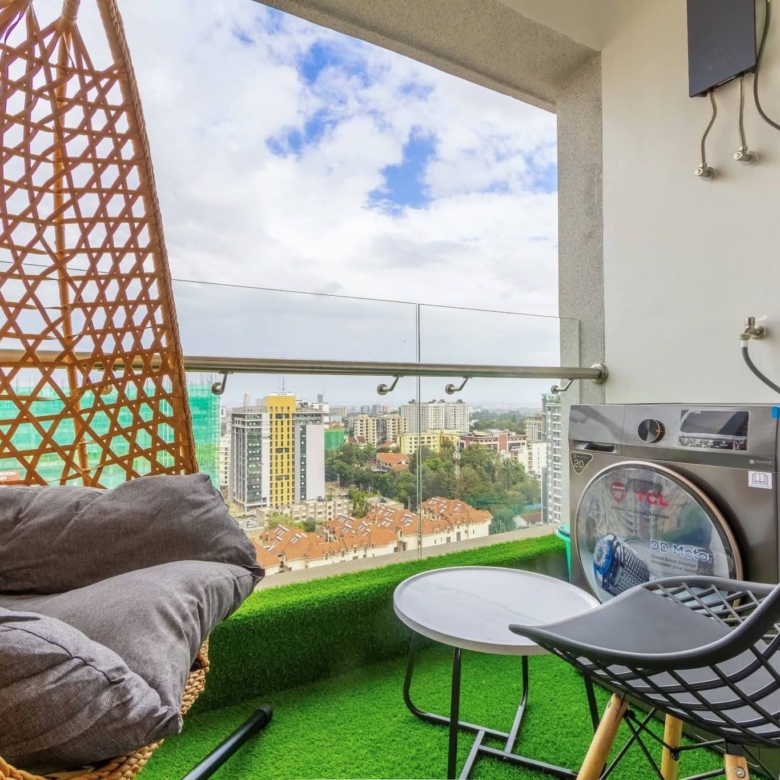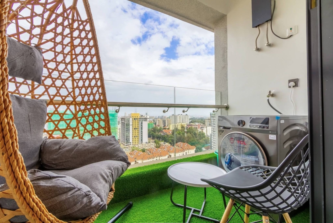 Modern apartment located just behind Yaya Centre and near Shujaa Mall, offering a private balcony with scenic views, Smart TV (55”), Netflix, and housekeeping services, complemented by top-tier amenities including a heated swimming pool, fully equipped gym, kids play area, rooftop hanging line, ample parking, and on-site conveniences such as a restaurant, grocery shop, pharmacy, and water/gas refill, all within a secure and vibrant neighborhood ideal for comfortable urban living.