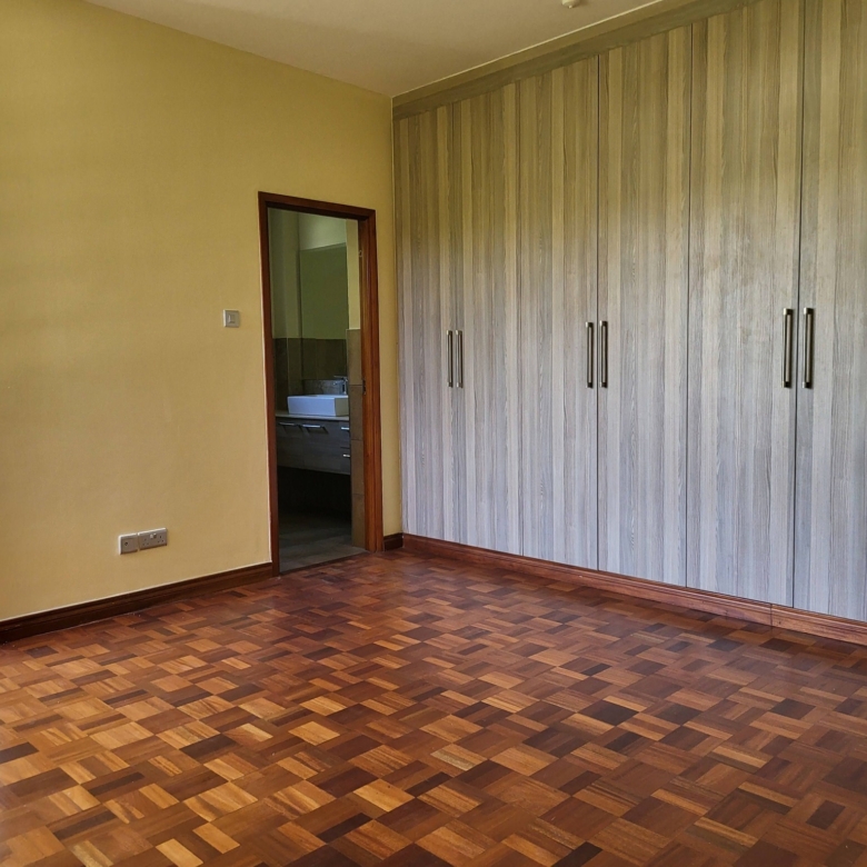Elegant 5-bedroom all en-suite townhouse in Lower Kabete, Nairobi, set within a secure gated community, featuring a bright living room with fireplace, separate dining area, modern fitted kitchen with pantry, family/TV room, spacious master bedroom with walk-in closet, DSQ, and a private garden with balcony, complemented by ample parking, landscaped surroundings, backup water supply, and 24/7 UN-approved security, ideally located near ISK, Peponi School, Westlands, and key amenities, perfect for families or expatriates, available at USD 5,000 per month.