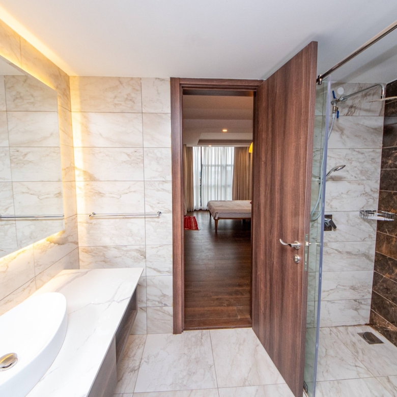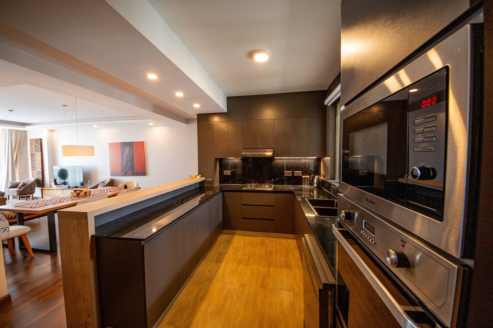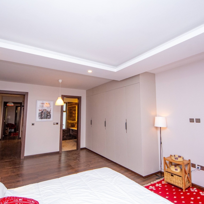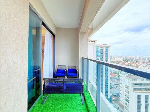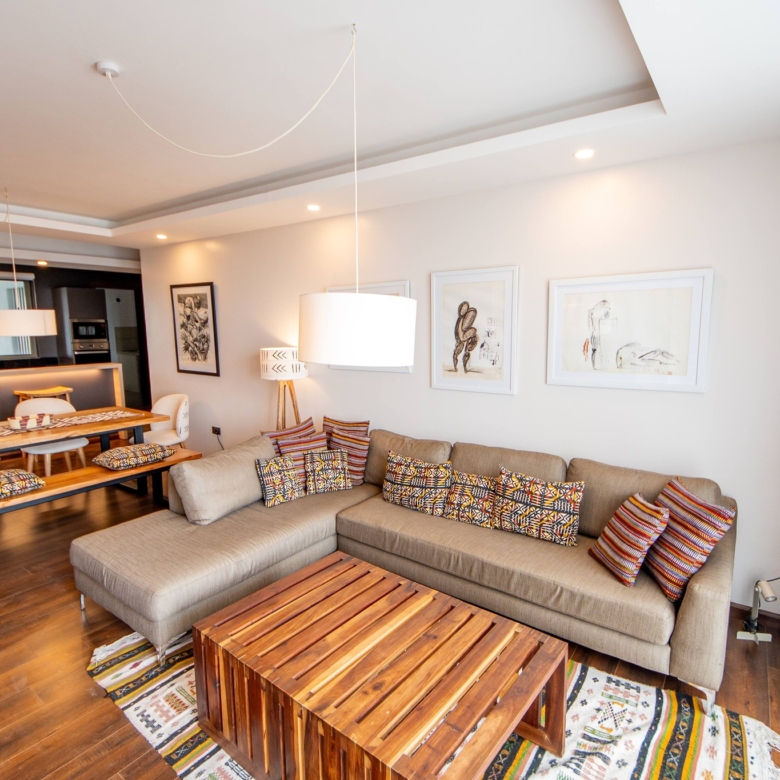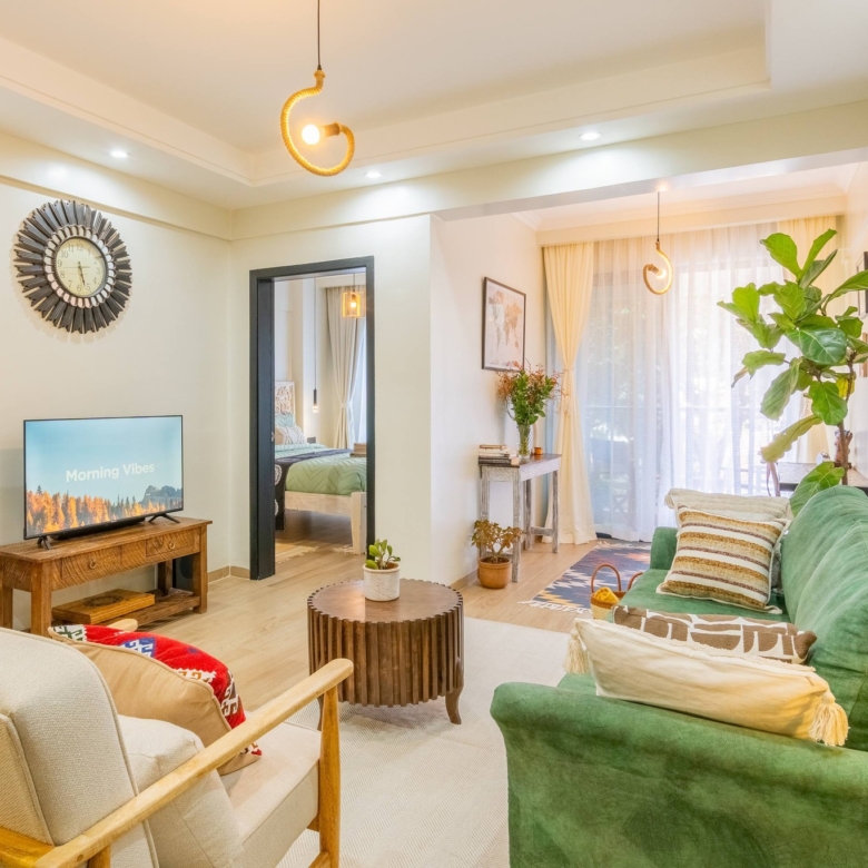 Tastefully furnished 3-bedroom all en-suite apartment with DSQ in Westlands, Nairobi, offering a unique blend of antique accents, modern furniture, and original artwork, featuring semi open-plan living spaces, a spacious lounge opening to a private balcony, a fully fitted kitchen with appliances and utensils, and a dedicated laundry area, complemented by premium amenities including a swimming pool, fully equipped gym, and backup generator, delivering a relaxed yet refined living experience in a prime central location, available at USD 2,100 per month.
